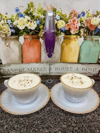 30. A handheld milk frother That will make you feel (and appear) as though you're a barista working right at home. You have the ability to craft various frothy beverages, ranging from traditional lattes to popular dalgona coffee creations, and even smoothly mix yourself a bowl of matcha. Customers also appreciate how simple it is to clean!