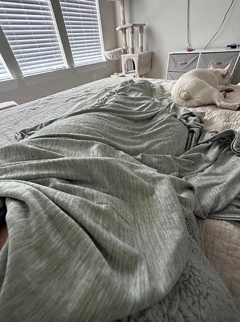 Promising review: WHAT MAGIC IS THIS???? I've never experienced a blanket that consistently keeps you cool? I'm always warm, yet I enjoy being underneath blankets. This is THE ULTIMATE blanket for avoiding overheating. It has an athletic fabric feel. Absolutely a must-get!!! Kenzie