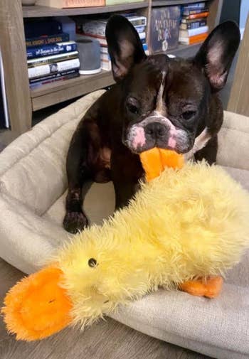 4. A ultra-durable duck chew toy Designed to endure the strong bites from your 6-pound (incredibly adorable yet surprisingly damaging) toy poodle. Farewell to the times when you had to pick up pieces of torn toys just moments after handing them over.